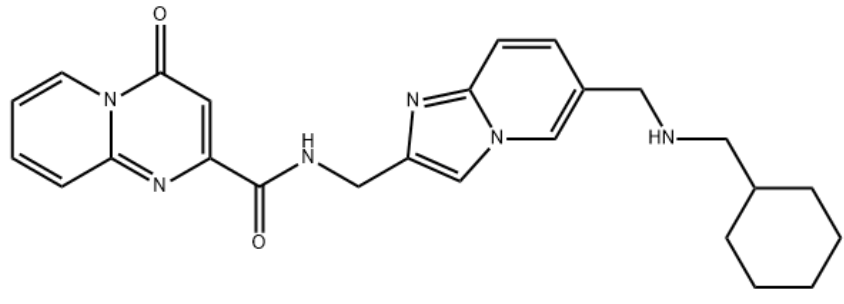 中文同义词:N-[[6-[[(环己基甲基)氨基]甲基]咪唑并[1,2-A]吡啶-2-基]甲基]-4-氧代-4H-吡啶并[1,2-A]嘧啶-2- 甲酰胺