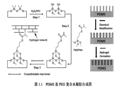 PDMS基PEG复合水凝胶合成图,如何增加PDMS亲水性、减少非特异性蛋白质污垢