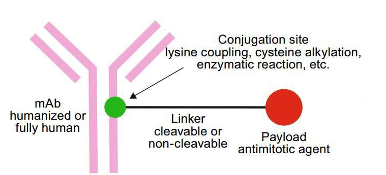 ADC药物是采用特定的连接子将抗体和小分子细胞毒药物连接起来,其主要组成成分包括 抗体、连接子和小分子细胞毒药物(SM)。抗体分子主要发挥靶向投递作用,小分子药物发挥效应。