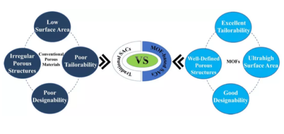通过以上方法,能够合成各种单原子催化剂。其中的缺点在于大多数通过热解的合成方法中材料的多孔性被消除,目前合成得到的单原子催化剂在多种重要催化反应中得以应用,比如CO2还原、N2还原、氧还原、制氢反应等。目前一些问题需要解决:目前大多数的合成过程中需要用ZIF基的MOF材料,开发其他种类的MOF基底同样有广泛的意义。