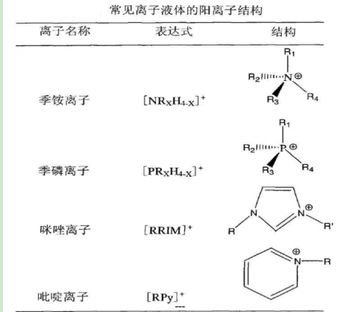阳离子分类:离子液体包含六大类:咪唑类、吡啶类、季铵类、季鏻类、吡咯烷类和哌啶类。
