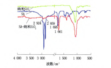 图1 SA与纳米SiO2和SA-纳米SiO2的FTIR分析