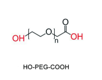 羧基化聚乙二醇(HO-PEG-COOH)可以用来修饰蛋白质、多肽和其他带有活性基团的材料,羧基可以很容易的和氨基形成稳定的酰胺键,也可以和羟基形成酯键。聚乙二醇可以增加溶解度和稳定性,减少多肽和蛋白质的免疫原性,它也可以抑制带电分子的非特异性结合改性表面。这种材料有广泛的在医疗器械改造领域中的应用,生物分子修饰以及颗粒表面功能化。