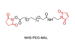 NHS-PEG-MAL可以用来修饰蛋白质、多肽以及其他含有巯基的材料或者小分子,马来酰亚胺和巯基在PH6.5-7.5很容易形成稳定的硫醚键。NHS在PH7-8.5与伯胺基团反应形成稳定的酰胺键,广泛应用于医药研究、药性缓释、纳米新材料研究、细胞培养。