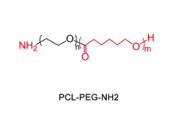 聚己内酯PEG氨基(NH2-PEG-PCL)可以用来修饰蛋白质、多肽和其他带有羧基(-COOH)或者其他能和伯胺反应的活性基团的材料和小分子,氨基(- NH2)可以很容易的和羧基形成稳定的酰胺键,也可以和活性酯(-NHS)在PH7-8.5形成酰胺键,聚乙二醇可以增加溶解度和稳定性。减少多肽和蛋白质的免疫原性,它也能抑制带电分子在修饰表面的非特异性结合。