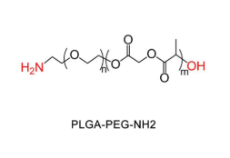 聚(L-丙交酯-co-乙交酯)-嵌段聚(乙二醇)-胺(PLGA-PEG-NH2)是一种功能性两亲嵌段共聚物(ABC),在PEG嵌段末端具有胺基,用于制备纳米粒子和胶束,用于靶向给药,PLGA-PEG是更常用的可生物降解ABC聚合物之一。