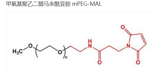 马来酰亚胺官能化的聚乙二醇,马来酰亚胺PEG是巯基(硫醇/ SH)基反应性PEG衍生物,可用于选择性修饰蛋白质,肽或具有可用巯基的任何其他表面。马来酰亚胺与硫醇之间的反应在pH 6.5〜7.5时容易进行,形成稳定的硫醚键。