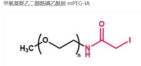 碘乙酰基(IA)功能化的聚乙二醇(IA PEG)是硫醇(-SH)基反应性PEG衍生物,可用于通过其可用的硫醇基团修饰生物分子或其他材料。 碘基很容易被硫醇基取代,形成一个稳定的碳硫醇键。