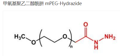 可用于通过其酰肼基修饰碳水化合物,蛋白质,肽,颗粒和其他材料。酰肼容易与醛或酮反应形成肼键,该肼键比在胺和醛基之间形成的席夫碱更稳定。酰肼与羰基之间的反应可使PEG链快速**地连接到目标分子和其他材料上。聚乙二醇化可以增加溶解度和稳定性,并降低肽和蛋白质的免疫原性。 它还可以抑制带电分子与改性表面的非特异性结合。这种材料在医疗器械改性,生物分子聚乙二醇化以及颗粒表面功能化领域具有广泛的应用。