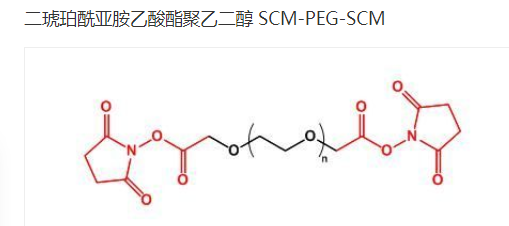 SCM-PEG-SCM是与胺基反应的线性同双功能化PEG试剂,是NHS-PEG-NHS酯试剂的一种。