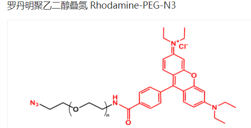 罗丹明用于追踪红色或粉红色荧光。叠氮与炔基在铜催化剂下发生点击化学反应。修饰性PEG广泛应用于修饰蛋白类药物、肽类化合物、有机小分子药物、生物材料等。
