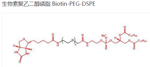 生物素可以很容易被检测,链霉亲和素结合法是广泛使用的分子靶点检测。聚乙二醇磷脂是形成脂质体的优良材料,可用于基因转染和疫苗传递,药物运输,还可用于靶向用药。磷脂具有疏水性和亲水性。 可用于修饰蛋白类药物、肽类化合物、有机小分子药物、生物材料等。