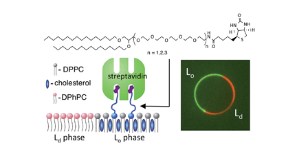 脂质分子自组织成特定的膜相是模仿细胞结构的分级分子组装发展的关键。虽然脂质尾部的堆积相互作用应该是引导脂质分配到有序或无序膜结构域的主要驱动力,但许多例子表明,头基和间隔物起着重要但未定义的作用。我们在这里报告了几种新的生物素化脂质的开发,这些脂质研究了间隔物化学和结构在膜相分配中的作用。