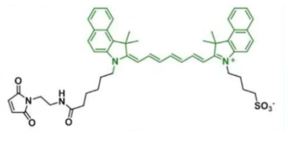 ICG-maleimide的马来酰 亚胺可以和蛋白、多肽、小分子或上的SH巯基反应连接。