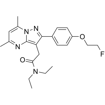 DPA-714 是一种高亲和力的移位蛋白 (TSPO) 配体 (Ki=7 nM),DPA-714 的结构中有一个氟原子,允许用氟 -18 进行标记,并可使用正电子发射断层成像进行活体成像。
