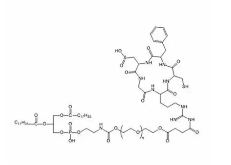DSPE-PEG-cRGD**新生血管靶向环肽,cRGD指的是5个氨基酸组成的环肽,比如cyclo(RGDfK)、cyclo(RGDfC)、cyclo(RGDyK)、cyclo(RGDyC)等任何一种形式。