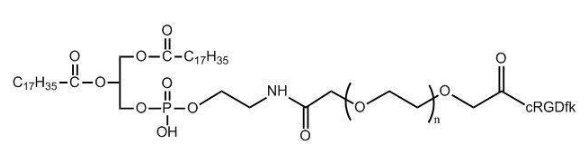 产品名称:cRGD-PEG2000-DSPE;PEG两端由cRGD环肽和DSPE磷脂组成