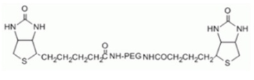 生物素-聚乙二醇-生物素可通过与链霉亲和素和抗生物素结合进行交联聚乙二醇化,具有高亲和力和特异性。生物素通过稳定的酰胺连接物与线性PEG结合。