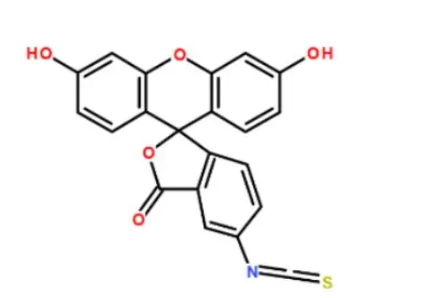 FITC分子量为389.4,吸收光波长为490~495nm,发射光波长为520~530nm,呈现明亮的黄绿色荧光。