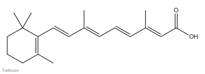 维A酸(Tretinoin),分子式为C20H28O2,是体内维生素A的代谢中间产物,主要影响骨的生长和促进上皮细胞增生、分化、角质溶解等代谢作用。