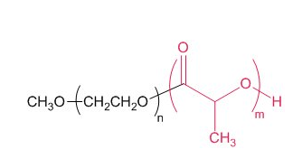 PEG-PLA是由亲水性嵌段聚乙二醇(PEG)和疏水性嵌段聚乳酸(PLA)组成的两亲性AB二嵌段共聚物。PEG聚合物被甲基醚基封端,疏水性嵌段的末端为羟基。具有可生物降解和生物相容性聚酯链段的聚乙二醇化共聚物还可用于制备核-壳胶束,纳米颗粒和微球。