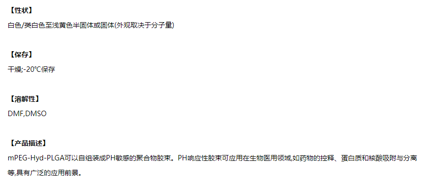 PLGA-HYD-mPEG 聚乳酸羟基乙酸共聚物腙键甲氧基聚乙二醇