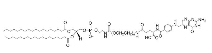 聚乙二醇化磷脂能**改善血液循环时间和稳定封装药物。这些材料还可用于靶向给药通过修改与目标表面配体如抗体、多肽。叶酸(-FA)具有高亲和力的叶酸受体,可用于靶向药物传递的细胞膜受体。