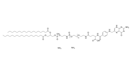 DSPE-PEG叶酸盐(Mw 3350)是一种含有叶酸的PEG衍生物。DSPE-PEG-Folate具有靶向作用,并与癌症细胞中的叶酸受体结合。