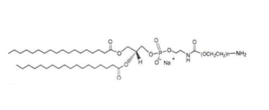 它是一种用于制备接枝或聚乙二醇化脂质体或胶束的有用的自组装试剂,同时也提供了用于生物偶联的胺基。