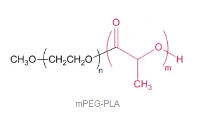 甲氧基聚乙二醇聚乳酸(mPEG-PLA)是一种嵌段共聚物,一端是亲水链段-甲氧基聚乙二醇,一端是亲油链段-聚乳酸。通过调整分子量或者亲水/亲油链段比值,甲氧基聚乙二醇聚乳酸可以作为不同种类药物的载体材料,并提高药物的水溶性以及包封率和载药量,可制成载药的微球、微囊、囊泡、胶束,用于实现药物的缓释、控释,也可作为成亲水性较好的组织工程支架材料。