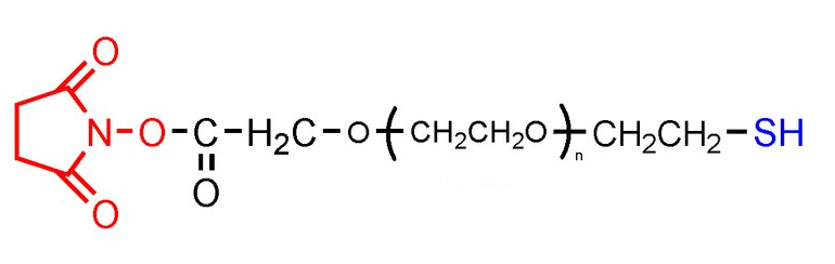 巯基PEG通过上述基团反应可以连接到靶向底物上面。 活性酯功能化PEG可以用来修饰蛋白,抗体,多肽等。活性酯可以和氨基反应形成稳定的酰胺键,比羧基省去了活化的步骤