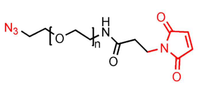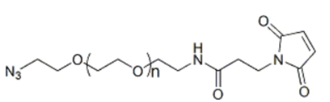 N3-PEG-MAL 是异双活性基团PEG衍生物的一种,也是用于点击化学的PEG衍生物。和炔基在铜离子催化下反应。也可以和DBCO直接在溶液中反应,不需要有毒的铜离子催化剂。
