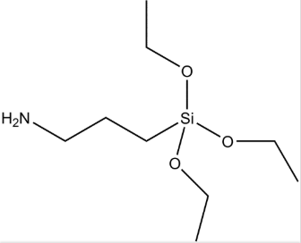 APTES易水解,放出乙醇,生成相应的硅醇缩合物。分子中的C—NH2键内氨基可与酸、羧酸酯、醛、酮、卤代烃、酰胺和腈等进行反应。