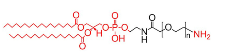 DSPE-PEG胺(DSPE-PEG-NH2)是反应性磷脂PEG试剂之一,在一个PEG末端具有一个反应性伯胺基。
