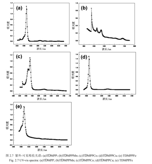 西安齐岳生物供应四间甲基苯基卟啉( Tm-MPP)、四对甲基苯基卟啉(Tp-MPP)、四(3,4)二甲基苯基卟啉(TDMPP)及其金属配合物(Fe包括Mn、Co、Cu、Fe),我们归纳总结合成方法,并采用紫外-可见光谱、红外光谱等手段对合成的化合物进行结构表征,以及化合物溶解性能的测定。