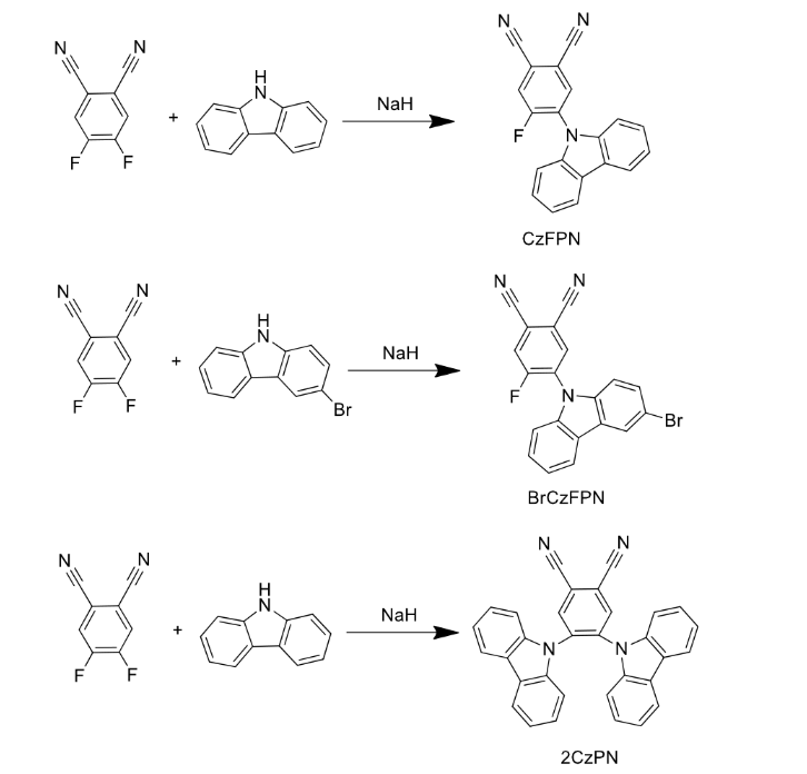 西安齐岳生物供应有机发光小分子CzFPN、BrCzFPN和2CzPN,含有溴原子(BrCzCzPN,2BrCzPN))以及不含溴原子(2CzPN)的AIE-TADF分子
