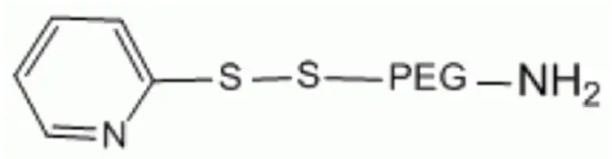 氨基PEG巯基吡啶(NH2-PEG-OPSS)是异双功能 PEG衍生物之一,可用于修饰蛋白质,肽和其他材料。氨基容易与琥珀酰亚胺酯(NHS),活化的羧基(-COOH),醛基和许多其他官能团反应;邻吡啶二硫醚(OPSS)功能化的聚乙二醇(OPSS PEG)是硫醇(-SH)基反应性PEG衍生物,可用于通过其可用的硫醇基团修饰生物分子或其他材料。邻吡啶基二硫键与巯基反应形成稳定的二硫键,同时释放巯基吡啶基。