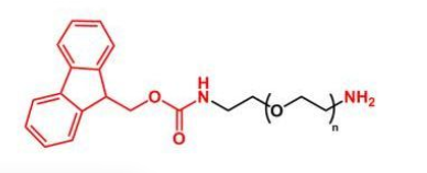 氨基容易与琥珀酰亚胺酯(NHS),活化的羧基(-COOH),醛基和许多其他官能团反应。Fmoc是一个胺保护基,可以在哌啶/ DMF溶液中将其脱保护以释放受保护的胺基,以进一步反应。 Fmoc保护的PEG胺可与PEG末端的一个胺基选择性反应。
