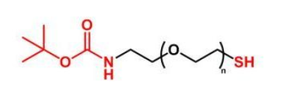 tBOC-NH-PEG-SH 在酸性条件下,该化合物中的t-BOC保护基团易于脱保护,释放出游离胺进行进一步反应。巯基可以与马来酰亚胺生成硫醚键,还可以与巯基吡啶反应得到二硫键,并释放吡啶环。