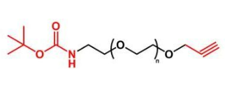 叔丁氧羰基用于保护氨基。炔基与叠氮在铜催化剂作用下发生点击化学反应。修饰性PEG广泛应用于修饰蛋白类**、肽类化合物、有机小分子**、生物材料等。