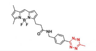 四嗪可用于许多生物成像和生物共轭应用的生物正交反应。目前被应用于蛋白质特定位点功能阐释、亚细胞结构选择性标记、**靶向传递、活体动物分子影像和生物兼容性材料的制备等。