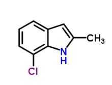 中文名 7-氯-2-甲基-1H-吲哚 英文名 7-Chloro-2-methyl-1H-indole 密度 1.3±0.1 g/cm3 沸点 302.7±22.0 °C at 760 mmHg 分子式 C9H8ClN 分子量 165.620 闪点 165.3±7.9 °C 质量 165.034531