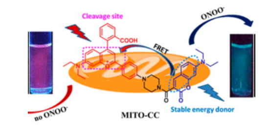 基于FRET机理设计双光子比率荧光探针 MITO-CC