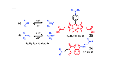 基于胺的可逆质子化的pH探针