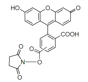 5-Carboxyfluorescein, succinimidyl ester,Molecular weight:473.39,Excitation (nm):493,Emission (nm):517,Extinction coefficient (cm-1 M-1):83000
