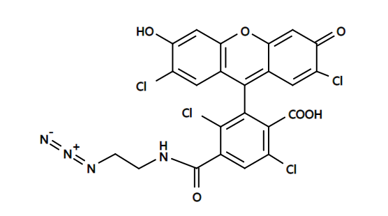 6-TET-N3,6-Carboxy-2',4,7',7-tetrachlorofluorescein azide,分子量:582.18,激发(nm):521,发射(nm):542,6-TET叠氮化物提供了一种方便的方法,可通过众所周知的点击化学方法标记炔烃修饰的寡核苷酸。