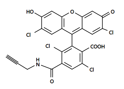 6-Carboxy-2',4,7',7-tetrachlorofluorescein alkyne,分子量:551.16,激发(nm):521,发射(nm):542,6-TET炔烃提供了一种方便的方法,可通过众所周知的点击化学方法标记叠氮化物修饰的寡核苷酸。
