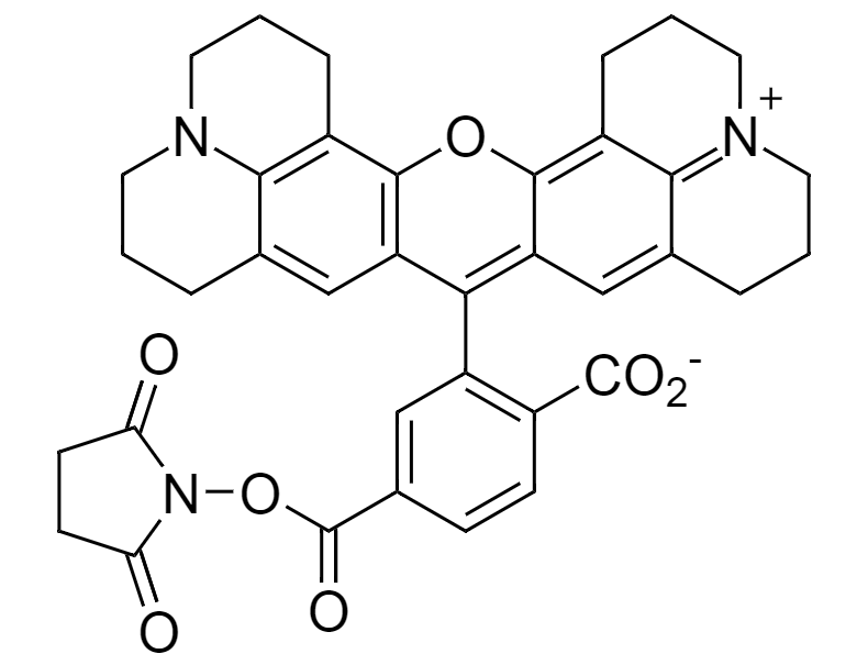 6-ROX, NHS,6-Carboxy-X-rhodamine, succinimidyl ester,分子量:631.67,激发(nm):578,发射(nm):604,6-ROX,SE是5(6)-ROX, SE的另一个纯化的单一异构体。6-ROX主要用于标记核苷酸和核酸测序。