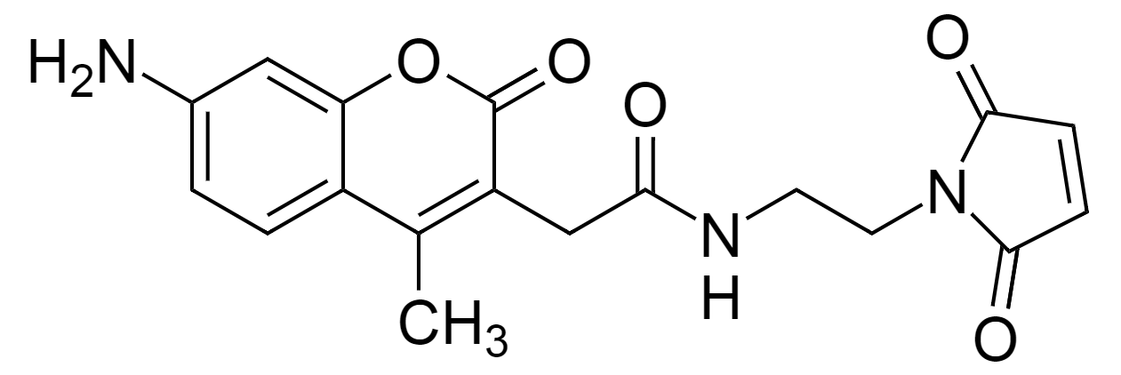 AMCA C2 Mal,7-Amino-4-methyl-3-coumarinacetic acid-C2-Maleimide,分子量:355.34,激发(nm):346,发射(nm):434,AMCA是蓝色染料之一。它可以在365 nm处被激发。它具有相当的光稳定性,并且其荧光在pH值为4-10时与pH无关。该AMCA C2马来酰亚胺可用于标记硫醇化合物。
