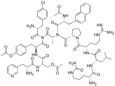 西安齐岳生物科技有限公司生产销售“Cetrorelix acetate,CAS:130143-01-0”“分子式:C70H92ClN17O14.2(C2H4O2) ,分子量:1551.16 ,纯度: > 98%, 溶解性: (R.T.: 25℃): DMSO”,该产品仅用于科研,如果需要请联系我们
